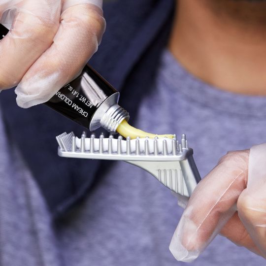 WAX, PETROLATUM, STEARETH-2, p-PHENYLENEDIAMINE, OLETH-50, RESORCINOL, 2,4-DIAMINOPHENOXYETHANOL HCl, m-AMINOPHENOL, STEARTRIMONIUM CHLORIDE, TRISODIUM HEDTA, FRAGRANCE, 1-NAPHTHOL, OLEA EUROPAEA (OLIVE) FRUIT OIL, SODIUM SULFITE, TAURINE, ISOPROPYL ALCOHOL, BUTYLENE GLYCOL, ALOE BARBADENSIS LEAF EXTRACT, ACID YELLOW 3, BHT, TOCOPHEROL
